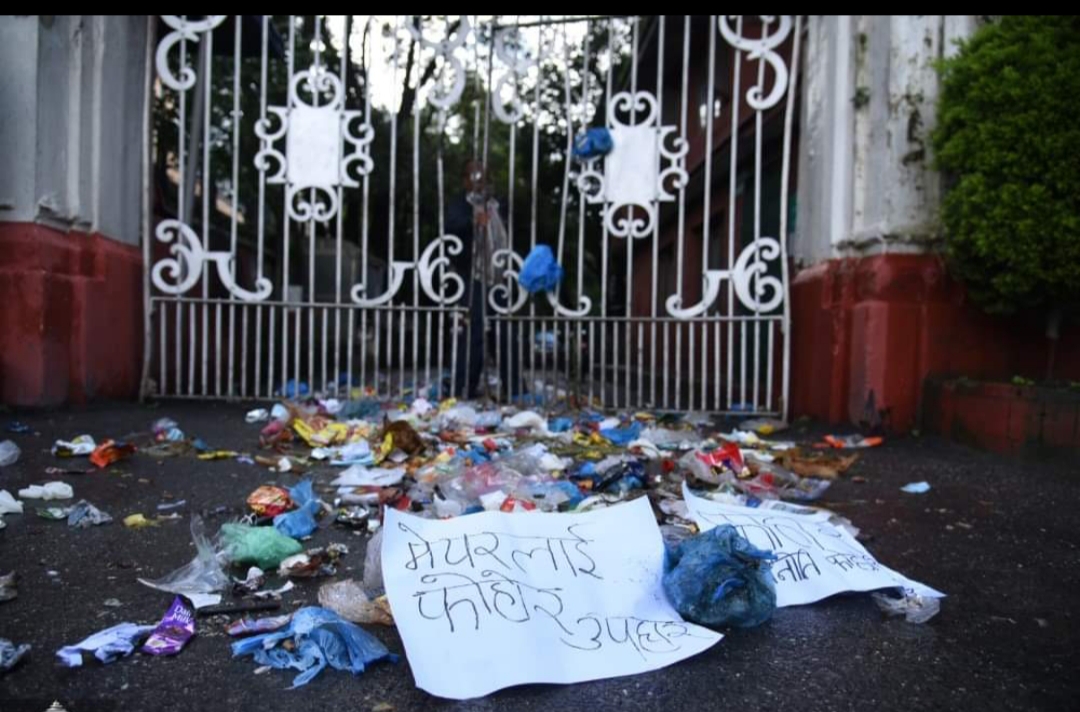उनीहरुले ‘मेयरलाई फोहोर उपहार’, ‘फोहोरी राजनीति फोहोरी शहर’ लेखेको प्लेकार्ड प्रदर्शन गरेका थिए ।