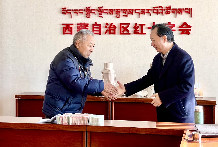 ल्हासास्थित रेडक्रस कार्यालयमा आज आयोजित कार्यक्रममा कल्याणकोषका अध्यक्ष कुञ्जो धार्के नेपालीले ल्हासा रेडक्रसका प्रमुख लियो यिदोङलाई सहायता रकम हस्तान्तरण गर्नुभएको हो ।