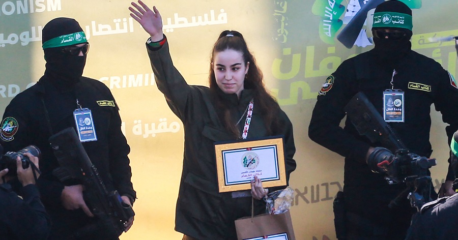 हमास र सहयोगी लडाकू समूह इस्लामिक जिहादका स्रोतहरूले जबालिया शरणार्थी शिविर र खान युनिसमा हुने बताएको बन्धक आदानप्रदानको औपचारिक कार्यक्रम अघि इस्लामिक जिहाद समूहले मोसेस र येहुदले एकअर्कालाई अँगालो हालेको र मुस्कुराइरहेको भिडियो फुटेज प्रसारण गरेको थियो । (रासस/एएफपी)