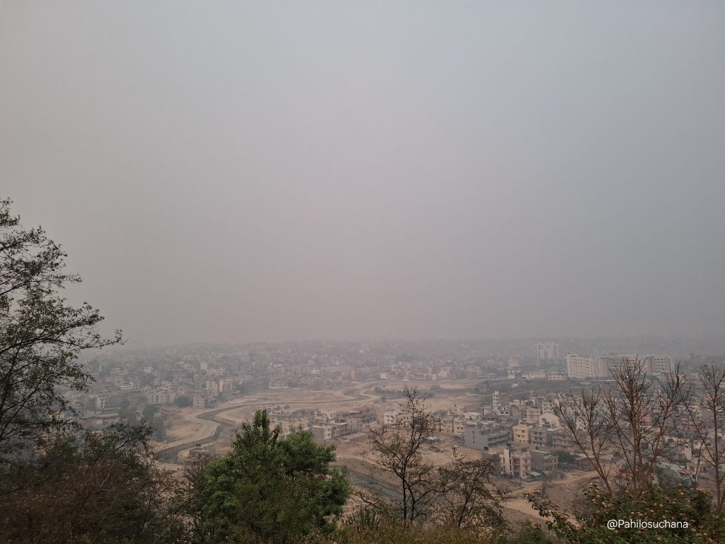 वायु प्रदूषणका कारण लागेको बाक्लो तुवाँलो । (तस्बिर: मनिषा बलामी)