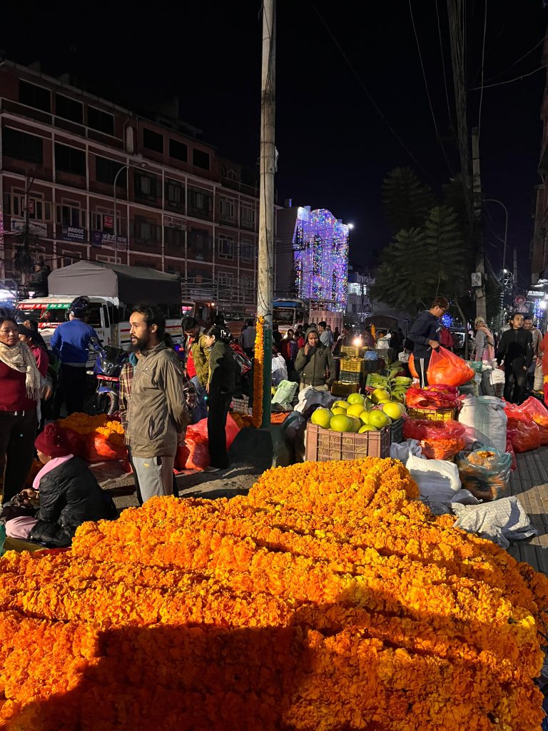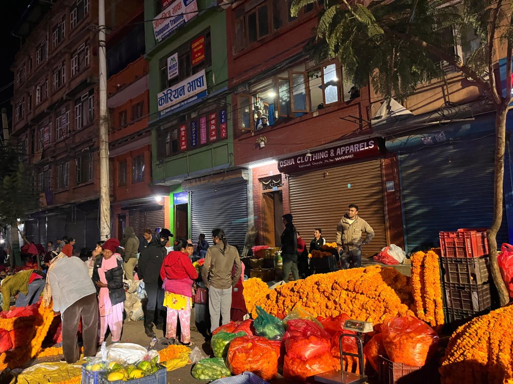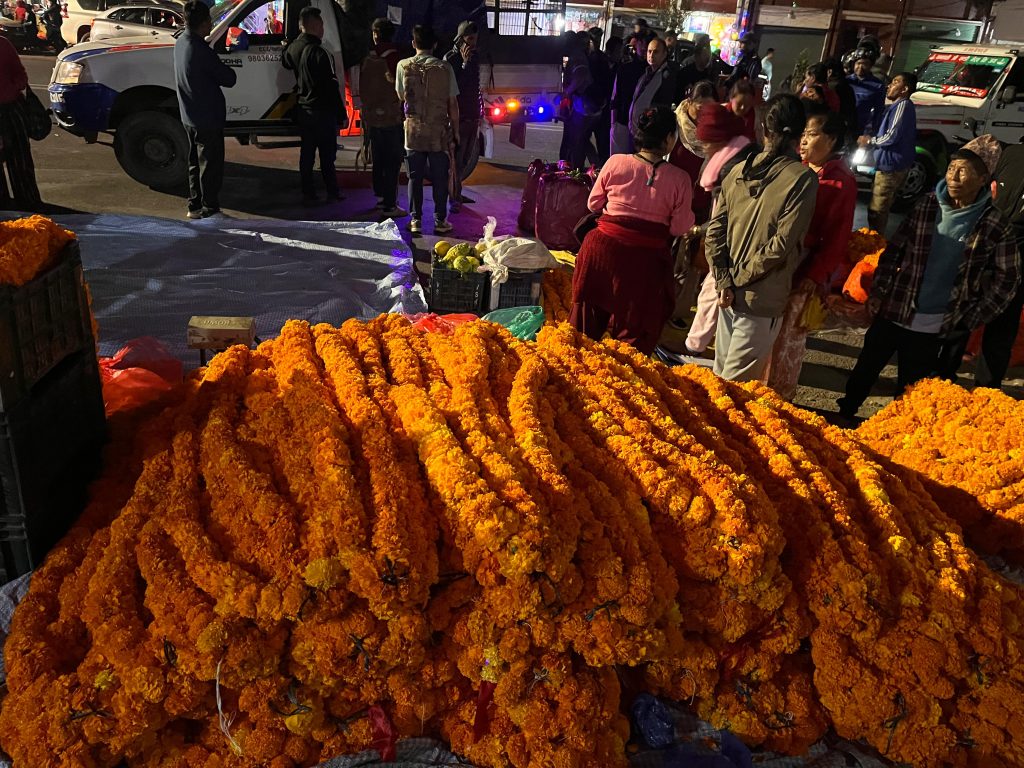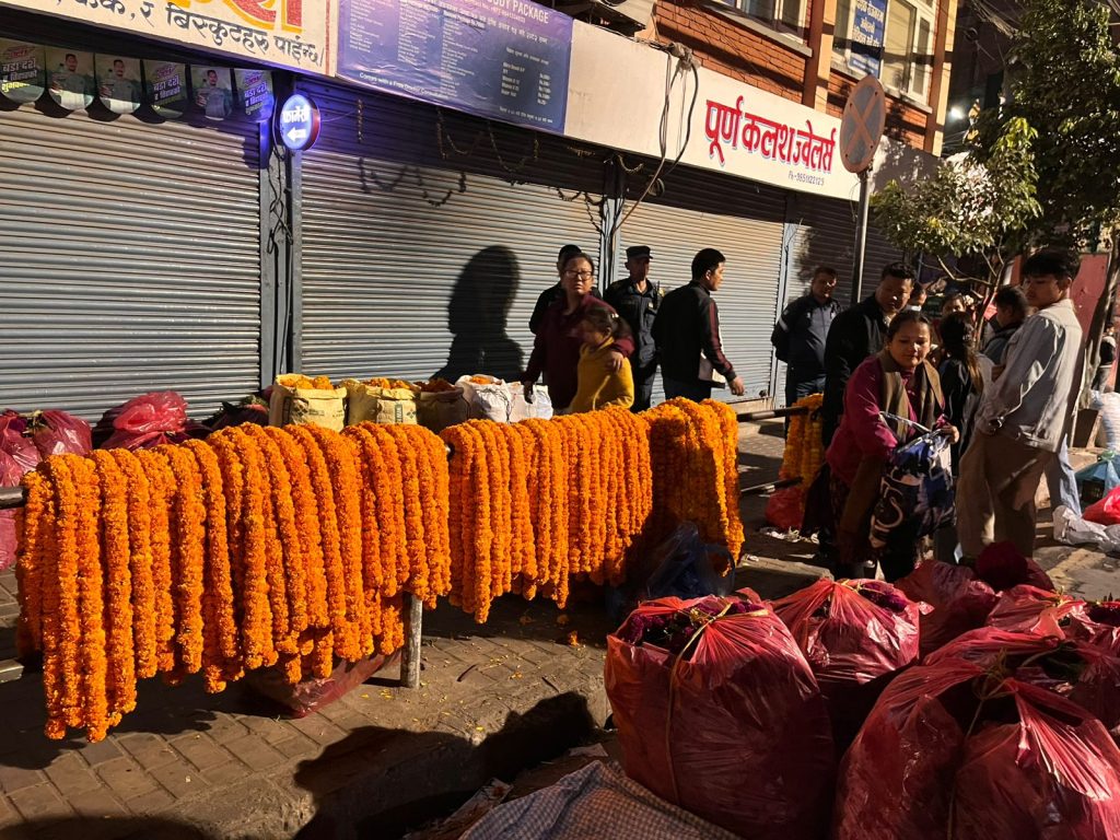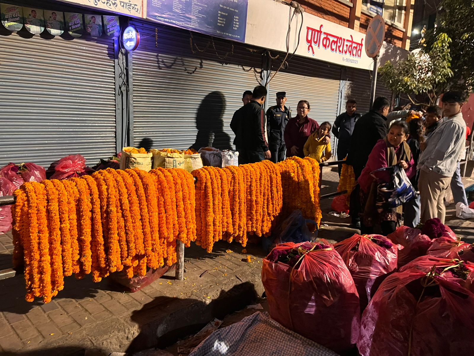 काठमाडौँको कालिमाटी बजारमा काभ्रे, पनौती, पाँचखाल, मनकामना लगायत स्थानबाट फूलमाला बिक्रीको लागी ल्याइएको हो ।
