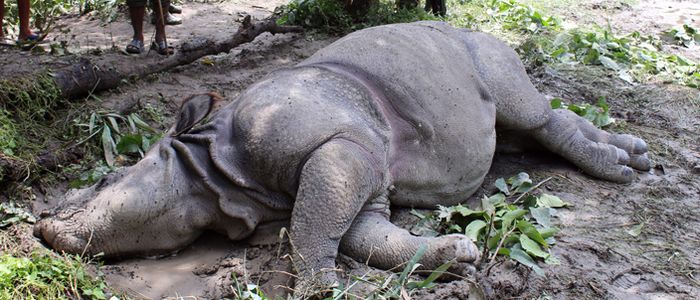 निकुञ्जका प्रमुख संरक्षण अधिकृत अणनाथ बरालले फलामको रड घोपिएको अवस्थामा उक्त गैँडा मृत फेला परेको बताउनुभयो । “धानबाली खानेक्रममा स्थानीयवासीले रड घोपेर मरेको अनुमान गरेका छौँ”, बराललले भन्नुभयो, “यस विषयमा थप अनुसन्धान अगाडि बढाएका छौँ ।” गैँडाको कोखमा रड घोपिएको कारण भित्री चोट लागी आइतबार राति सो गैँडा मरेको भए पनि सोमबार मृत भेटिएको बरालले बताउनुभयो ।