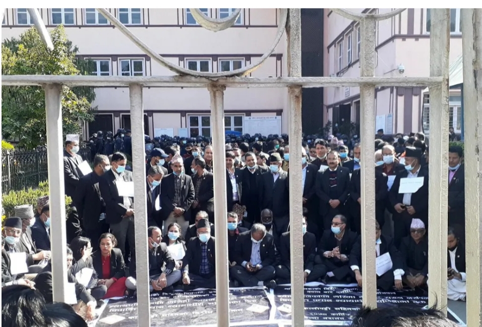 कात्तिक ३०, काठमाडौं । बिगत लामो समयदेखि प्रधानन्यायाधीश चोलेन्द्र शम्सेर जबराको राजीनामा माग गर्दै आन्दोलनरत कानून व्यवसायीहरुले आज पनि प्रदर्शन जारी राखेका छन् । आमज उनीहरु बिहानै देखि सर्जोच्च अदालकत परिसरमा धर्न दिईरहेको छन भने प्रहरीको घेरा तोडेर मूल गेटसम्म पुगेका छन् ।