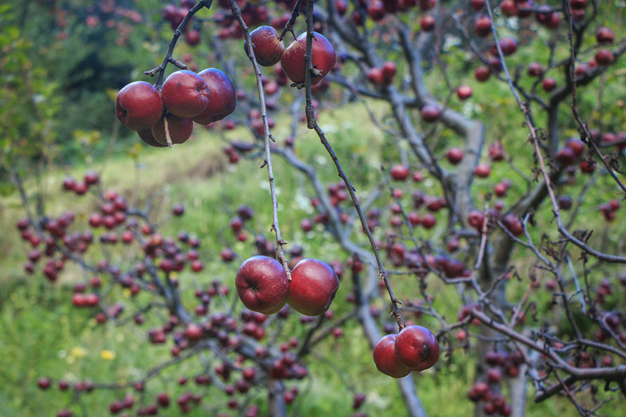 नयाँ र कलिला बोटले धान्न नसक्ने भएपछि छाँटकाँट शुरु गरिएको छ । ‘अहिले एउटा बोटमा पाँच केजीसम्म स्याउ फलेका छन्’, वडाध्यक्ष लामाले भने, ‘साना बोटले त्यो भन्दा बढी धान्न नसक्ने भएपछि दाना टिपेर फाल्नु पर्यो ।’