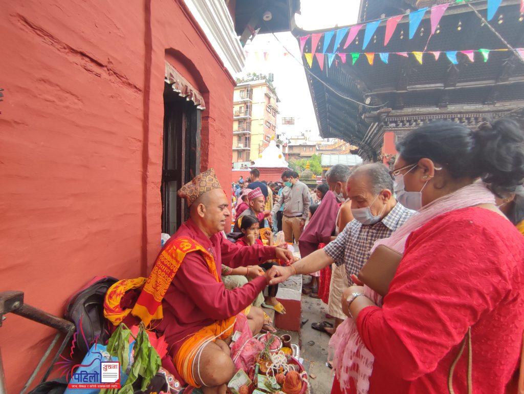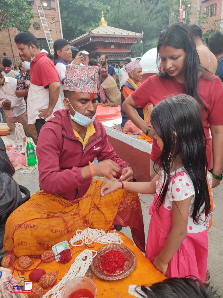 रक्षाबन्धन बाँध्न तथा नयाँ जनै फेर्न शुक्रबार बिहानैदेखि विभिन्न मठ मन्दिर परिसर, वाग्मती नदी किनारमा भक्तजनको भीड लागेको छ ।