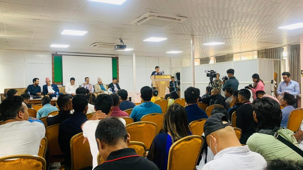 नुमा पाख्रीन, असोज १० काठमाडौं । प्रतिनिधी सभा सभामुख अग्निप्रसाद सापकोटाले सरकारले पर्वतीय क्षेत्रलाई राष्ट्रिय उद्योगको मान्यता दिनुपर्ने बताएका छन् । सोमवार काठमाडौंमा आयोजित ‘गन्तव्य जुगल’ नामक पुस्तक सार्वजनिक कार्यक्रममा बोल्दै सभामुख सापकोटाले यस्तो बताएका हुन् । कार्यक्रममा सिन्धुपाल्चोकको जुगल हिमाल रहेको पर्यटकीय क्षेत्र जुगल गाउँपालिकाको मुख्य–मुख्य पर्यटकीय स्थलहरूको फोटो संग्रहित पुस्तक ‘गन्तव्य जुगल’ बिमोचन गरेका थिए ।