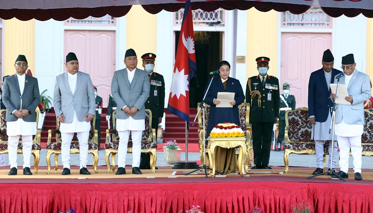 पुस ११, काठमाडौं । नवनियुक्त प्रधानमन्त्री पुष्पकमल दाहाल प्रचण्डले पद तथा गोपनीयताको शपथ ग्रहण गरेका छन् ।